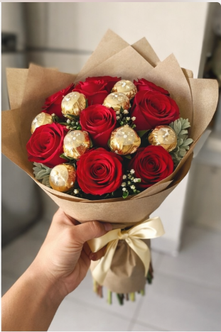 Caixa Luxo de Rosas Vermelhas + Ferrero Rocher